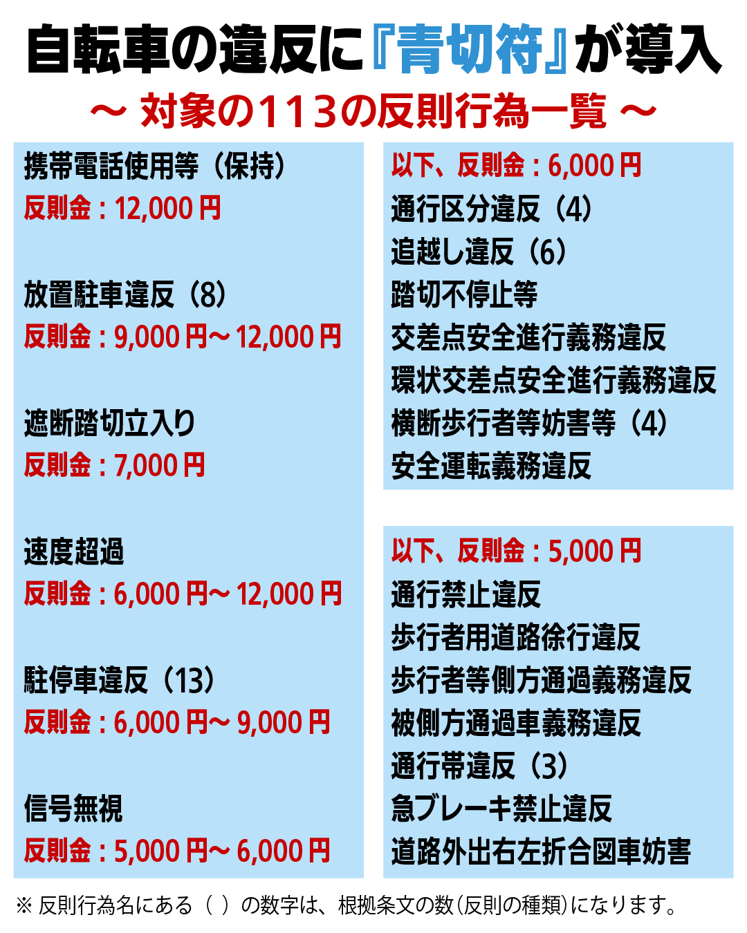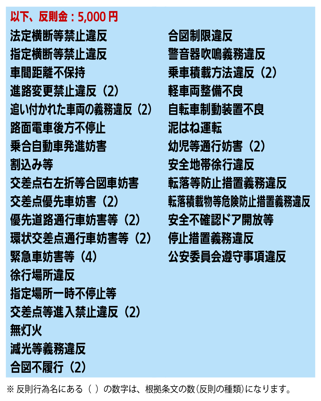 青切符の対象となる違反は、基本的に道路交通法に定められたものに準じています。