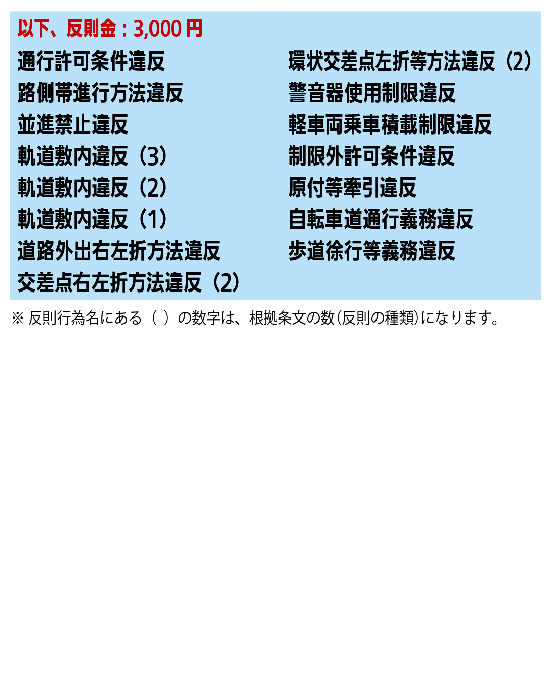反則金は状況によって変わりますが、3,000円〜12,000円の範囲で反則金が科されます。